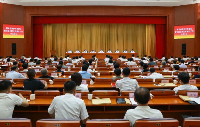 8月16日,全市精神文明建设暨创建全国文明城市工作动员会议召开?;嵋樯钊胙肮岢瓜敖阶苁榧枪赜诰裎拿鹘ㄉ璧闹匾凼龊驮诹赡疾焓钡闹匾不昂椭匾甘揪瘢媛涫等裎拿鹘ㄉ璞碚么蠡峒叭【裎拿鹘ㄉ韫ぷ骰嵋椴渴鹨?,勇于争先、埋头苦干,推动全市精神文明建设高质量发展,为谱写中国式现代化朝阳篇章提供强大精神力量。副省长、市委书记单义出席会议并讲话。市委副书记、市长老颜武主持会议。市委副书记、市委政法委书记周慧哲出席。